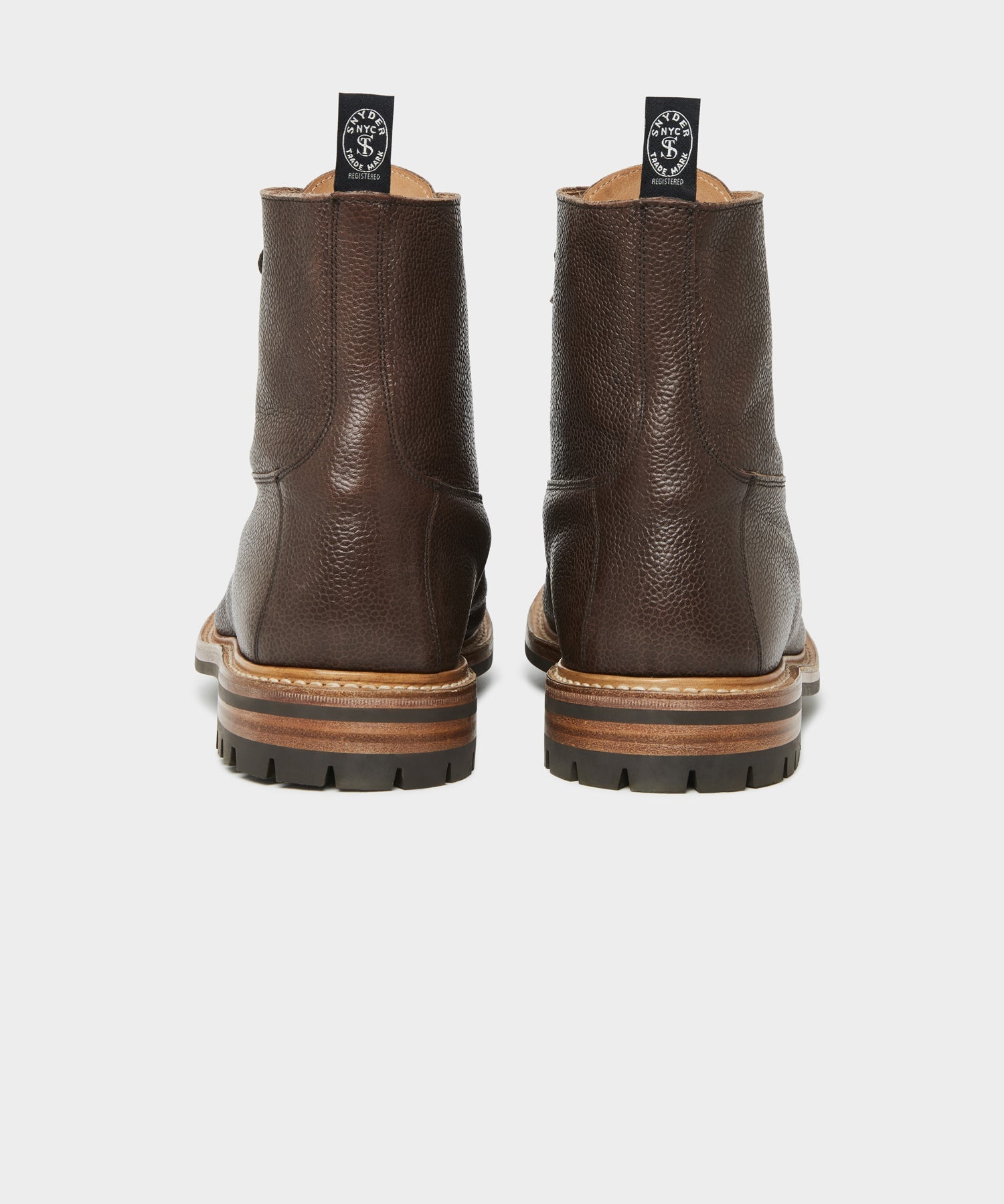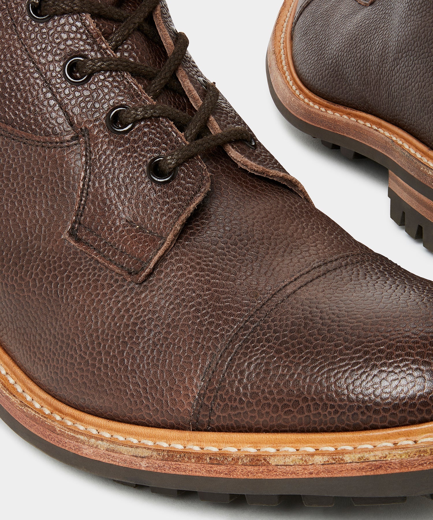 Tricker’s classic super boot is perfect for wear whenever you need it. This lace-up cap toe boot has a storm welt and a goodyear welted sole. The upper is constructed of a pebbled leather. One of this heritage company’s bestselling styles, its simple-yet-sleek design makes it extremely versatile: wear it in the fields, hiking, or out and about town with anything from denim and tees to tailored suits. This particular pair features exclusive Todd Snyder X Tricker’s co-branding at the pull tab, sole, and box.