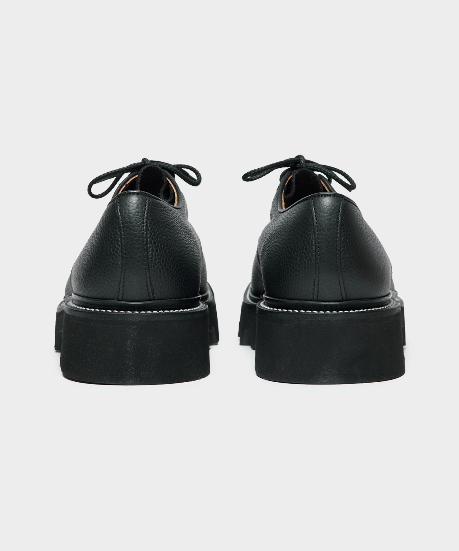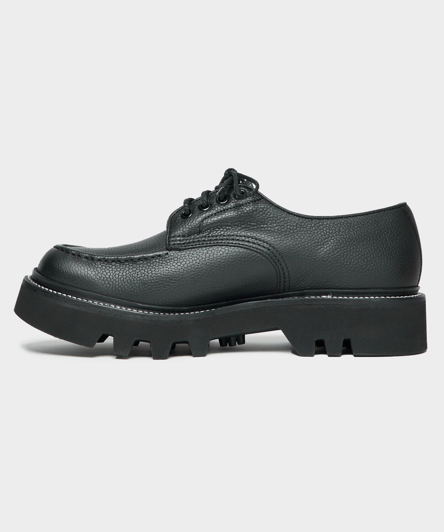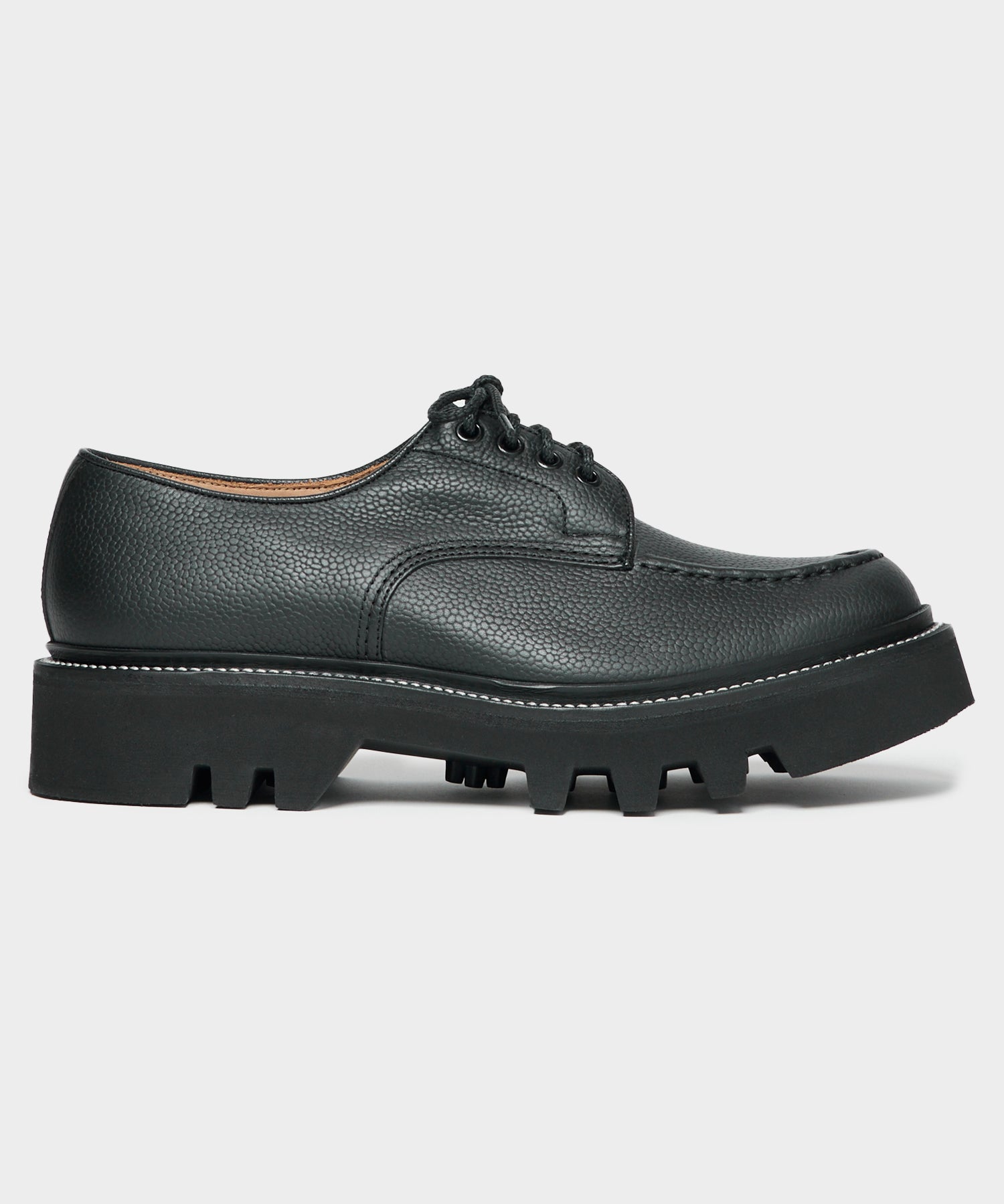 The Derby is a comfortable and versatile shoe. Todd referenced Tricker’s archival designs for his take on this classic, which features a chunky sole and pebble leather upper. The leather is extremely unusual — known as “Olivvia,” it comes from a renowned tannery in Germany. The high-quality leather is sustainably tanned using a unique liquor made from olive leaves; the leaves are otherwise a waste product, and what remains after tanning is used as fertilizer.