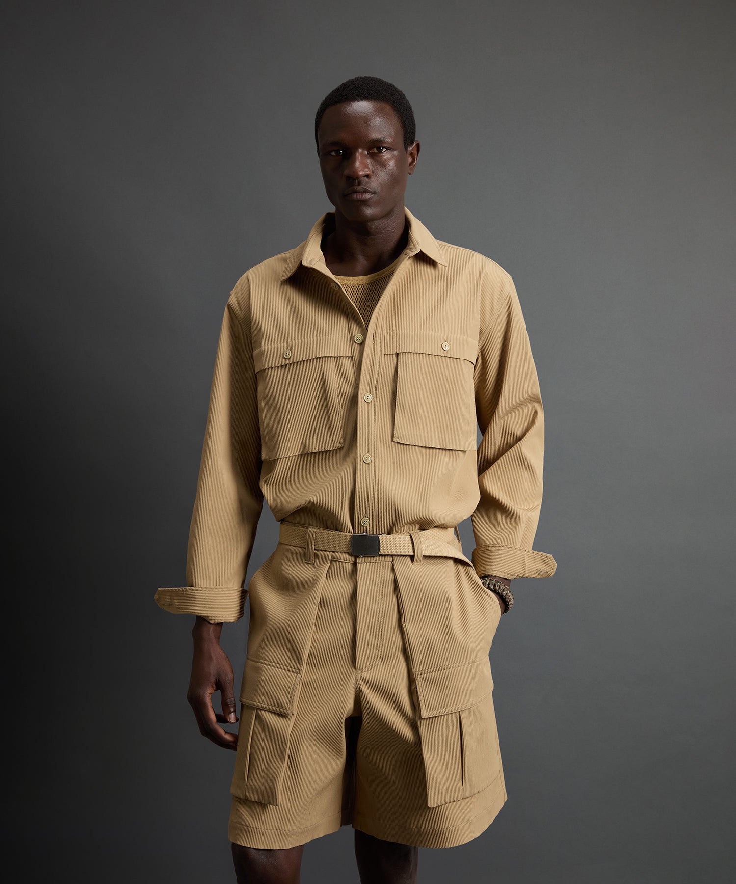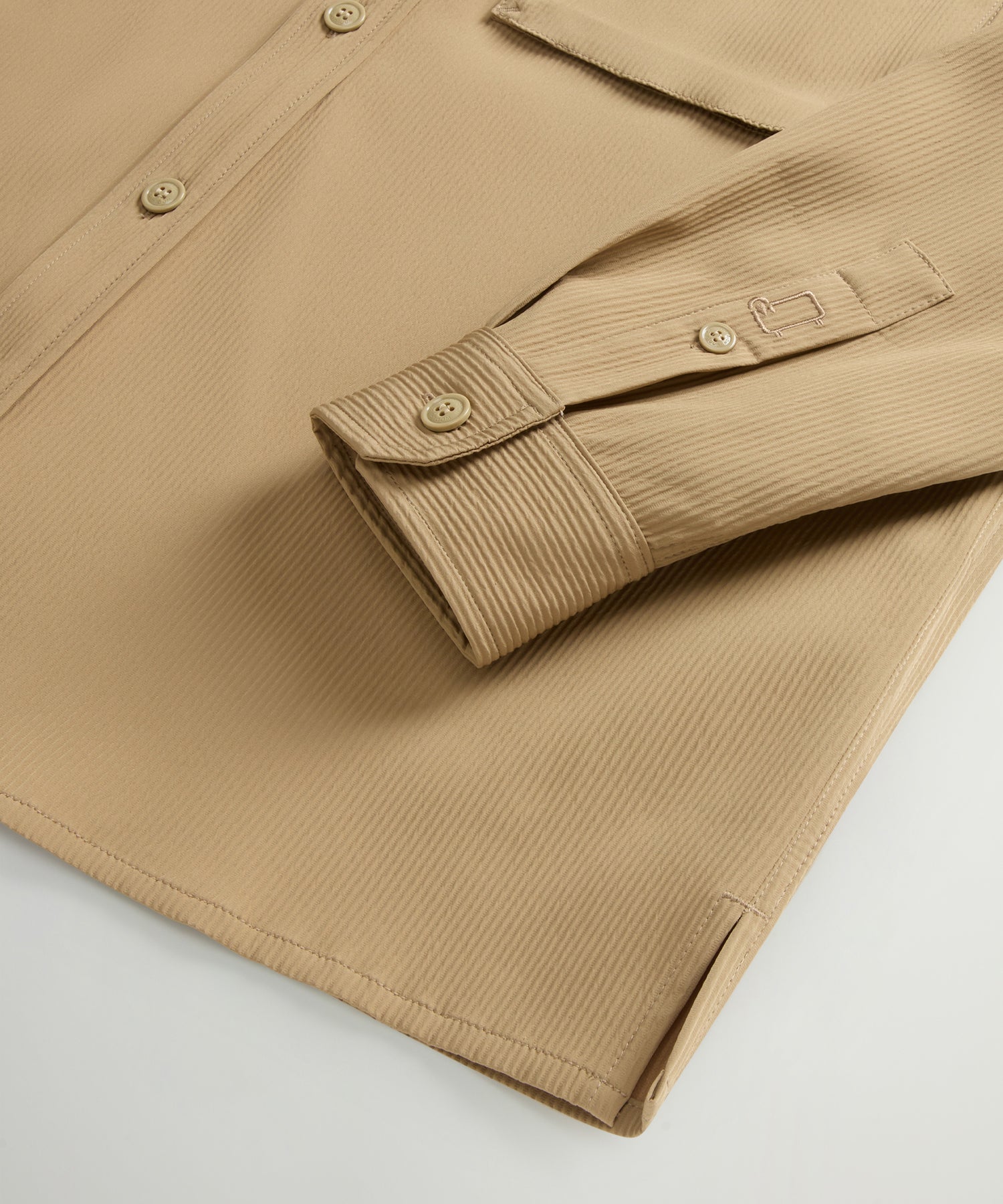 Channel camp uniform meets modern monochromatic dressing in this versatile Shacket. Crafted from a unique, water-resistant tech corduroy, they’re both highly durable and have an old-school look and feel. It features a number of vintage-inspired details — the covered yoke at the chest is an archival Woolrich detail from the late 1800s, and the proper point collar (with an internal collar stand) gives it a traditional look. With double-needle construction for durability and an easy fit, you’ll want to throw this on for all your future adventures.