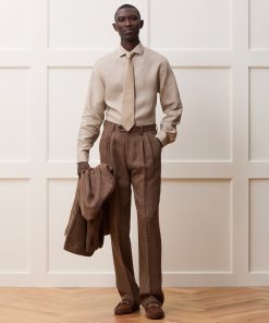 Our Wythe Trouser is a casual take on the traditional pleated trouser in a modern, oversized but tailored fit. A natural waist and double reverse pleats (which face out, away from the fly) lead to a relaxed fit through the legs for a vintage-inspired look. It’s made from an Italian blend of linen, silk and wool — think of it as a spring tweed, with a lightweight feel but the rugged look of donegal. Wear with a Point Collar Shirt and the matching Wythe Jacket when you’ve got something formal on the calendar, or dress it down with a Sweater Polo.