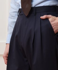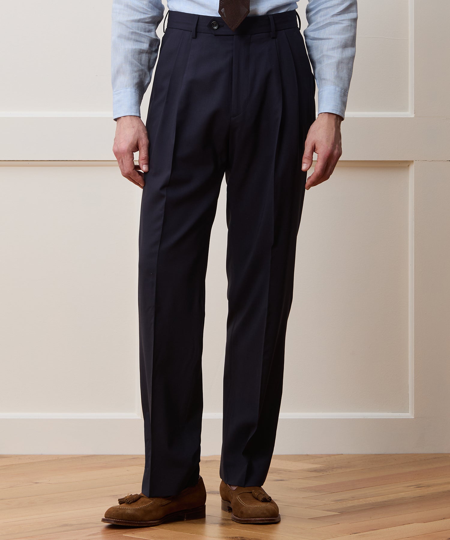 Equal parts tailored and dramatic, our Wythe Suit Pant is a casual take on the traditional pleated trouser in a modern, oversized but tailored fit. A natural waist and double reverse pleats (which face out, away from the fly) lead to a relaxed fit through the legs for a vintage-inspired look. This pant is crafted from an Italian tropical-weight virgin wool with a hint of stretch: comfortable, soft and the perfect weight for 3-season wear. Wear with the matching Wythe Suit Jacket when you’ve got something formal on the calendar, or dress it down with a Sweater Polo or Camp Collar Shirt.