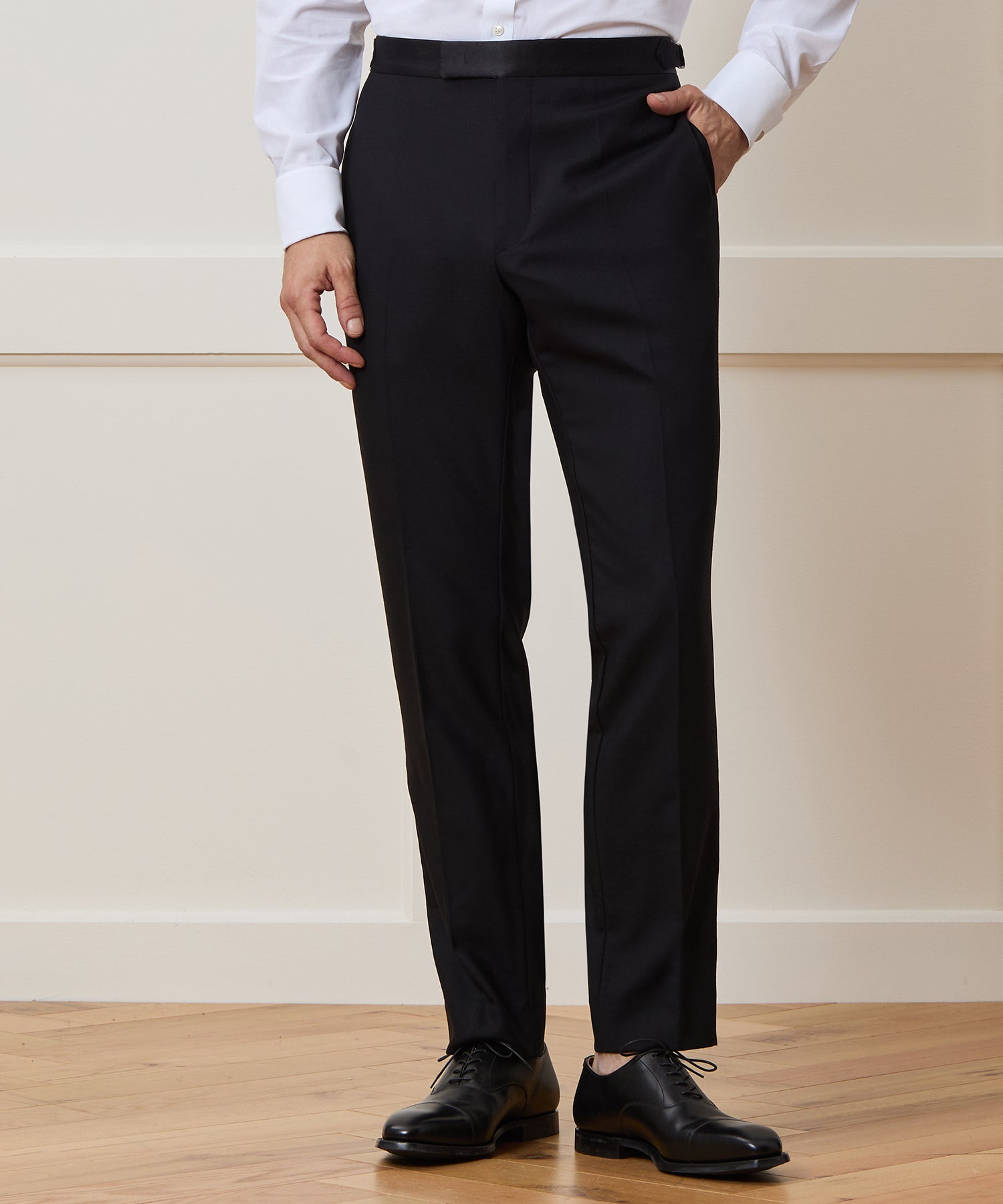 An essential for the well-dressed, this luxurious tuxedo pant is crafted in handsome black wool from a renowned Italian mill, Tollegno 1900. Its impeccable tailoring works on everyone: slim, modern, with a slight taper to the leg. Other premium details include the single satin stripe at the outside seam, as well as a bit of satin at the (adjustable) waist — it’s a clean look that doesn’t require a cummerbund or braces. A versatile and classic style, whether you go black tie and pair it with the matching jacket or treat it as a foundational piece for other looks. If you’re planning for a special occasion, we’d recommend adding a bow tie and our Hamilton dress shirt to the mix.