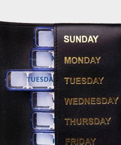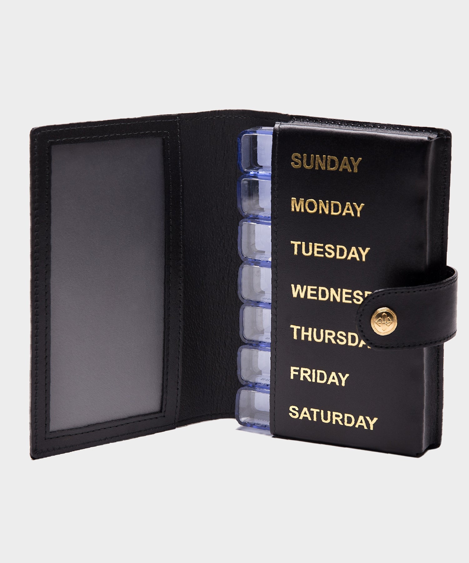 Store all your medication and food supplements in style within our pill case. Open the case and you will find seven pill boxes within, one for each day. Each box includes removable dividers so you can separate different pills for ‘Breakfast’, ‘Lunch’, ‘Dinner’ and ‘Bedtime’ if needed. The top of the boxes slide off easily, making access to the pills simple and quick.