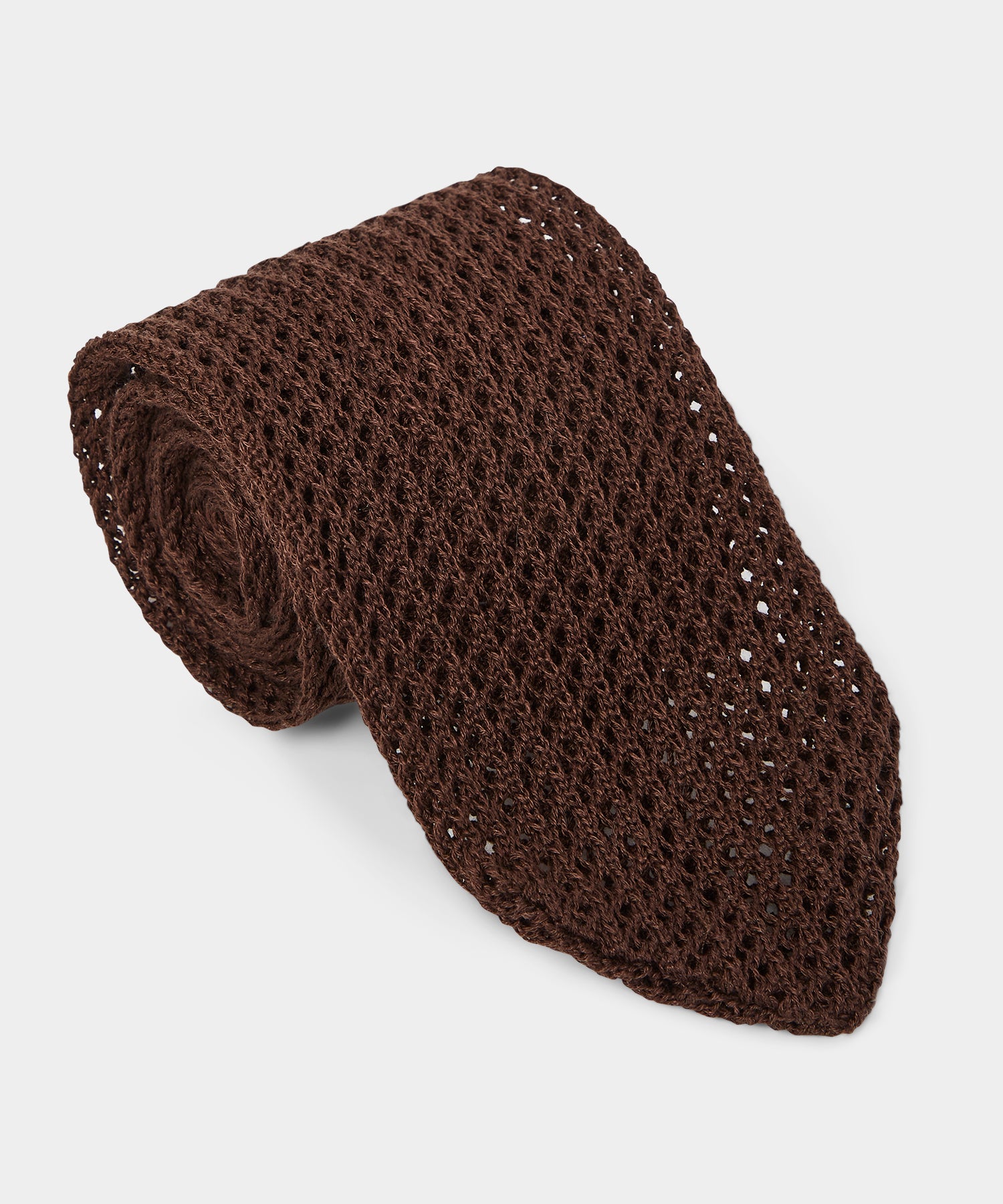 Our hand-knit ties are constructed in Italy, and pair perfectly with any suit, sport coat or jacket. This particular tie is made 100% open weave cotton, and adds a chic and slightly casual element to your tailored looks.