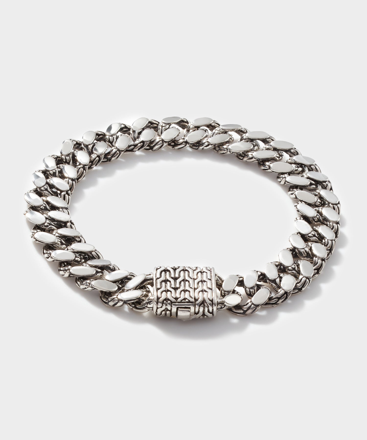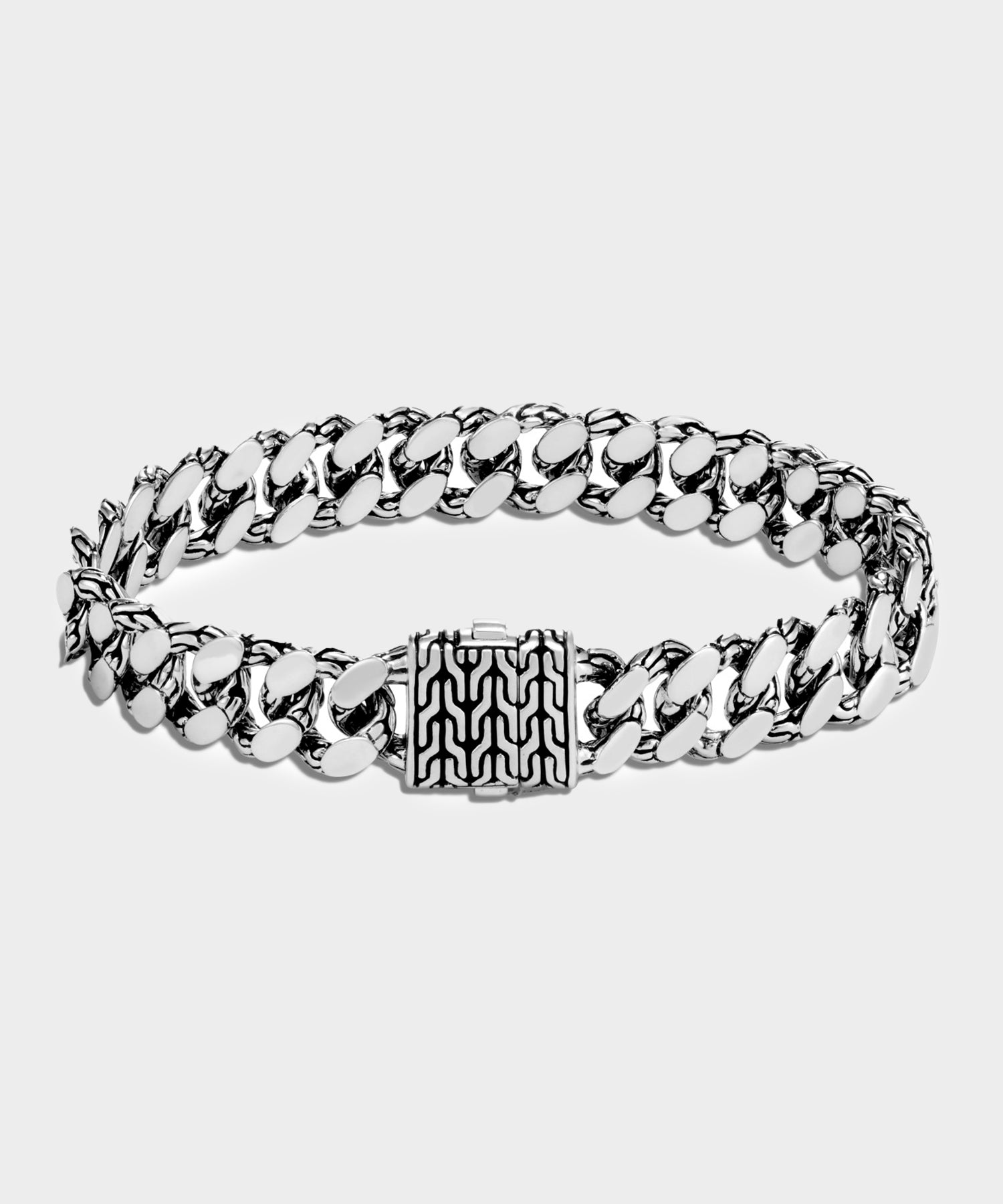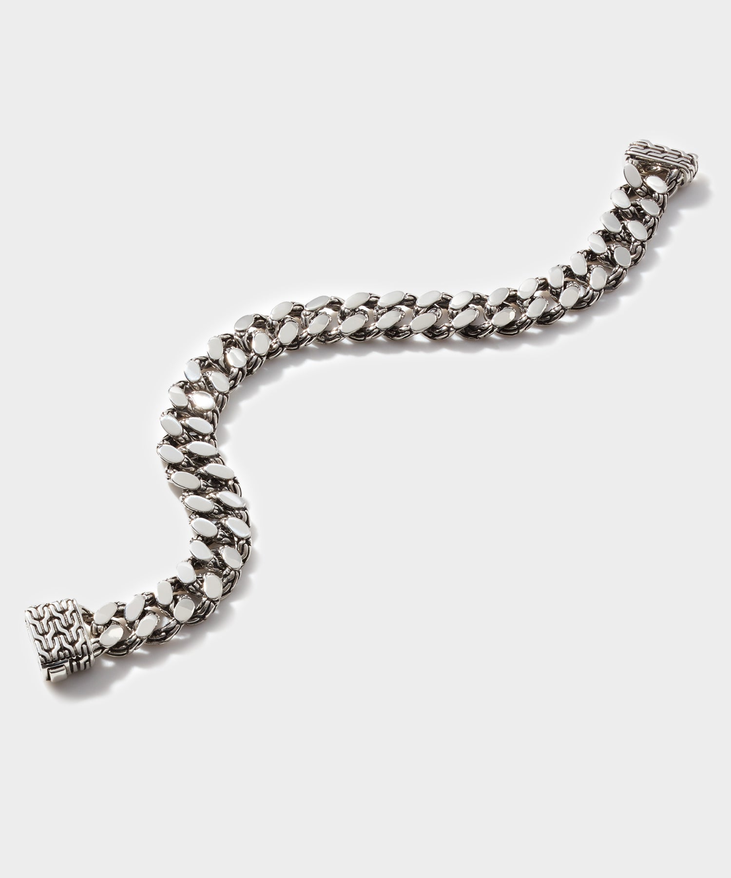 A chunky, bold chain designed to lie flat against the skin. The essential modern layering piece.