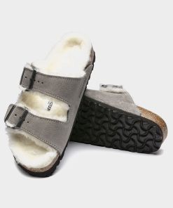 The popular BIRKENSTOCK Arizona is a classic model with two adjustable straps. Featured in genuine high-quality suede – and is now available in an extra cozy version thanks to a soft, bright genuine shearling lining on the anatomically formed cork-latex footbed and straps.