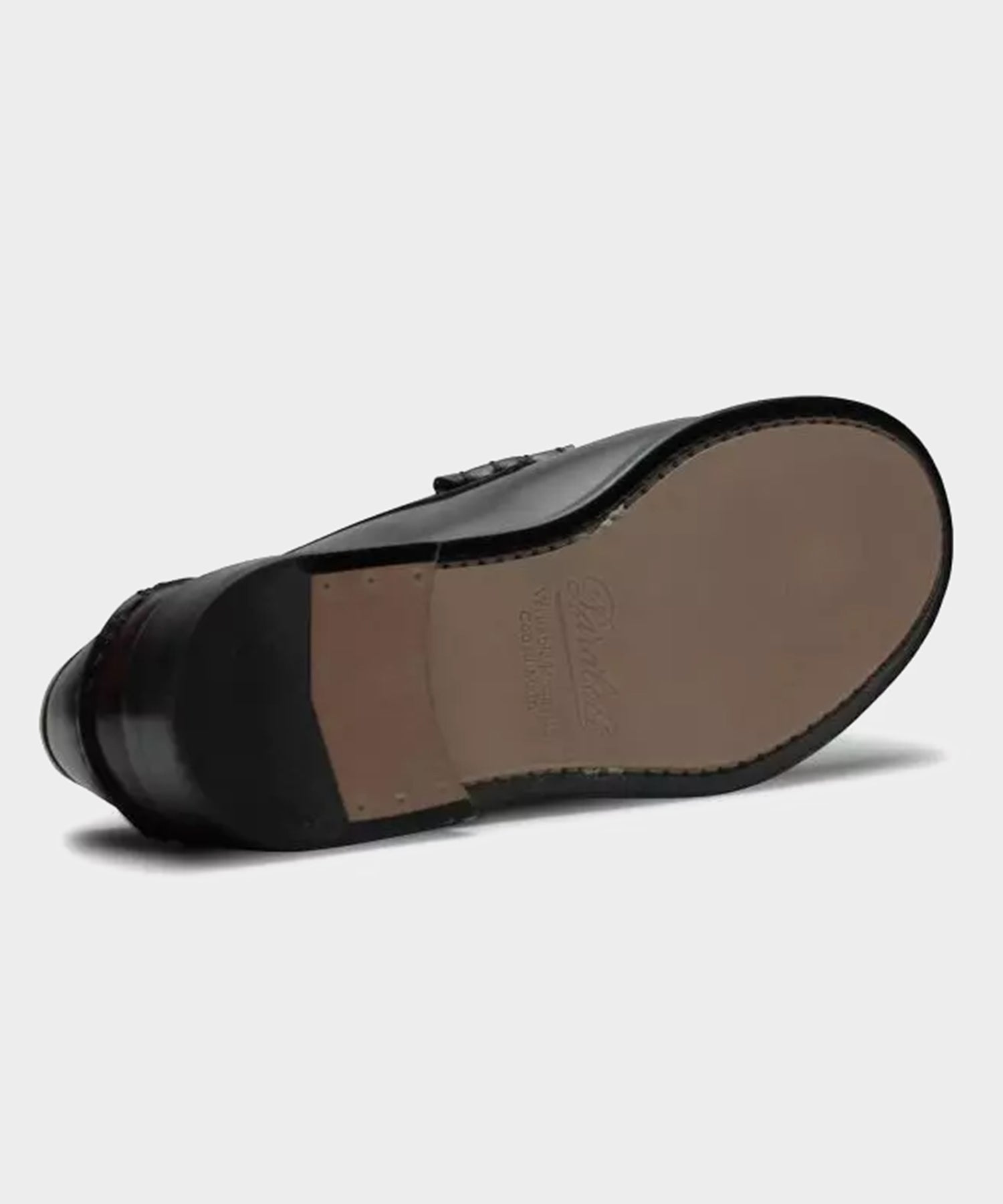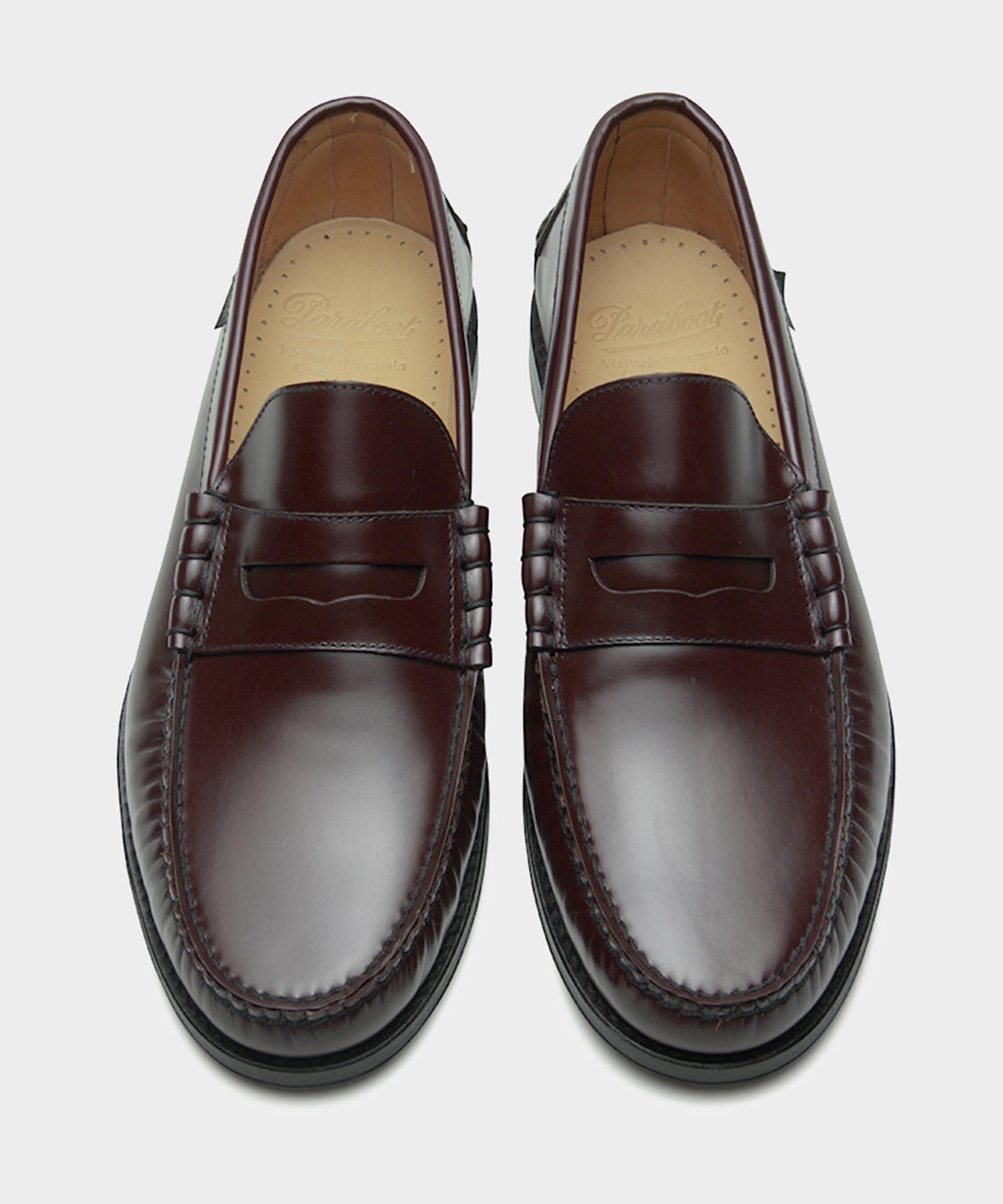 This collegiate model is based on an original American shoe known as the ‘penny loafer’. It owes its name to the penny which was often inserted inside a slot fitted into the shoe’s barrette to give the shoe a more stylish touch. It comes furnished with a leather sole.