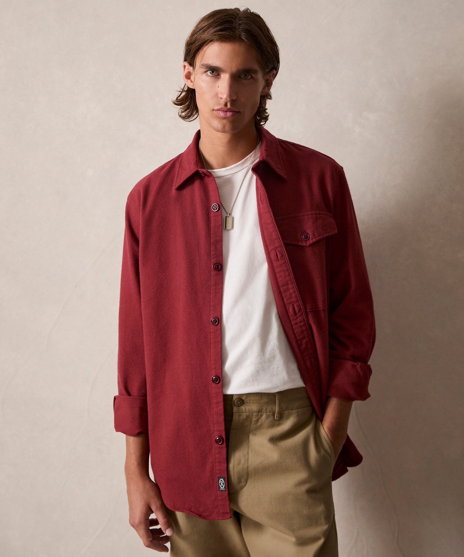 An elevated take on a classic utility shirt. Crafted from chamois fabric — which takes its name from a type of antelope in the Alps, speaking to its practical, outdoorsy origins — this shirt is soft but substantial. The midweight cotton fabric comes to us from Portugal; it’s made by weaving a thicker and thinner yarn together for a unique high-low effect. With a slightly roomy fit designed for layering, it looks excellent worn over a long-sleeved tee, one of our Favorite shirts, or a cashmere turtleneck. Workwear detailing includes the double-needle construction and a patch-and-flap chest pocket.