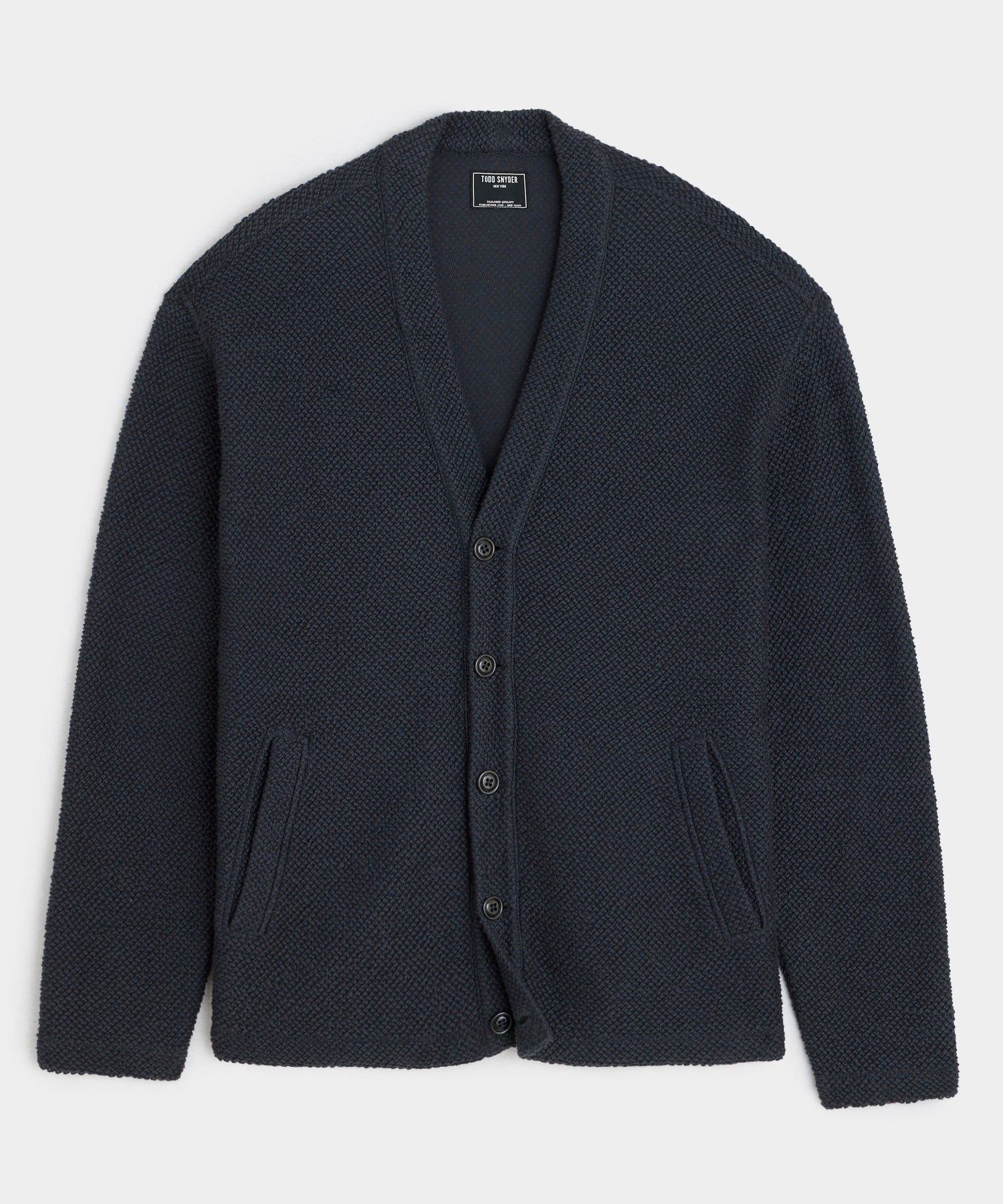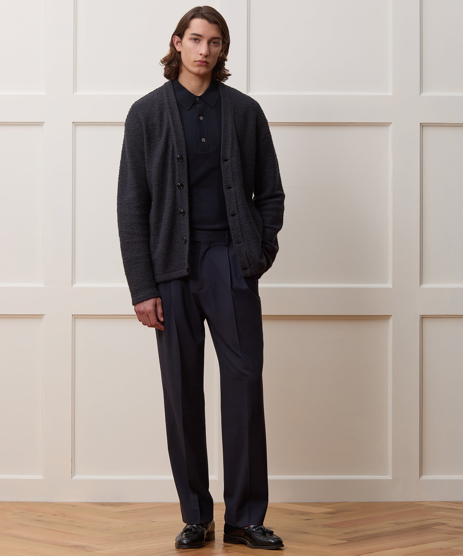 This chic cardigan is crafted from a plush cotton boucle with a soft but nubby look. It has a classic fit — not too slim, not too relaxed — that layers well over anything from a tee to an Oxford. One detail not to miss: the two hand pockets, designed as vertical welts rather than the more traditional patch pockets you find on most cardigans, which give this layer a modern feel.