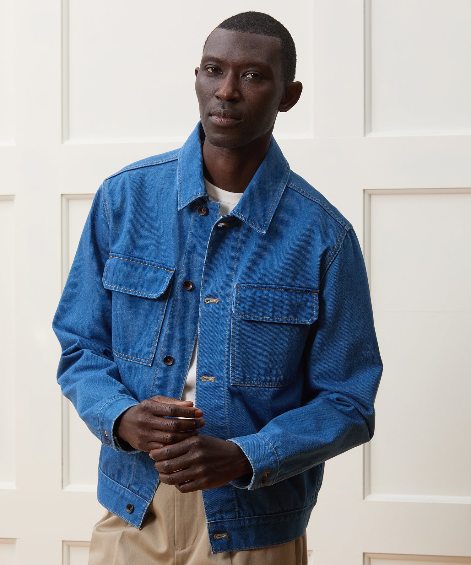 Our Worker Jacket marries a practical silhouette with refined good looks. The fit is ever so slightly boxy, hitting right at the hip; there are shank buttons at the placket and cuffs, along with two pockets at the chest. It’s crafted from a mid-weight denim that’s neither too rigid nor too light, in a very true, flat blue wash. Consider this your new go-to jean jacket.