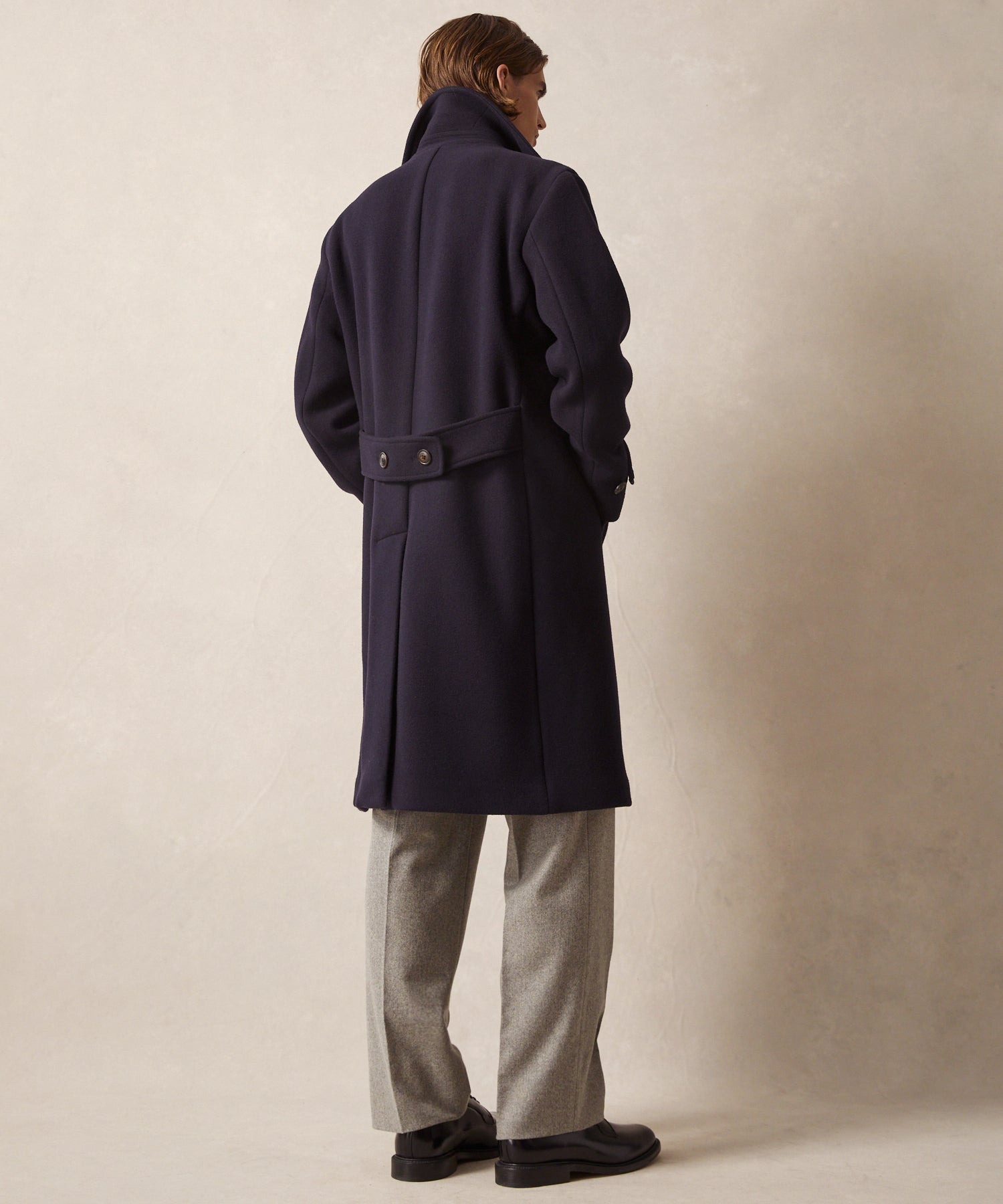 This is a classic topcoat with a sartorial, Todd Snyder twist. The fabric is a handsome Italian wool with a rugged, gutsy feel. It features premium detailing, including a classic double-breasted front and plenty of practical pockets. The fit is full and oversized, for a chic, on-trend look that layers beautifully. It’s designed to hit below the knee and looks equally good thrown over denim and a sweater as it does paired with trousers and a button-down or a full suit.