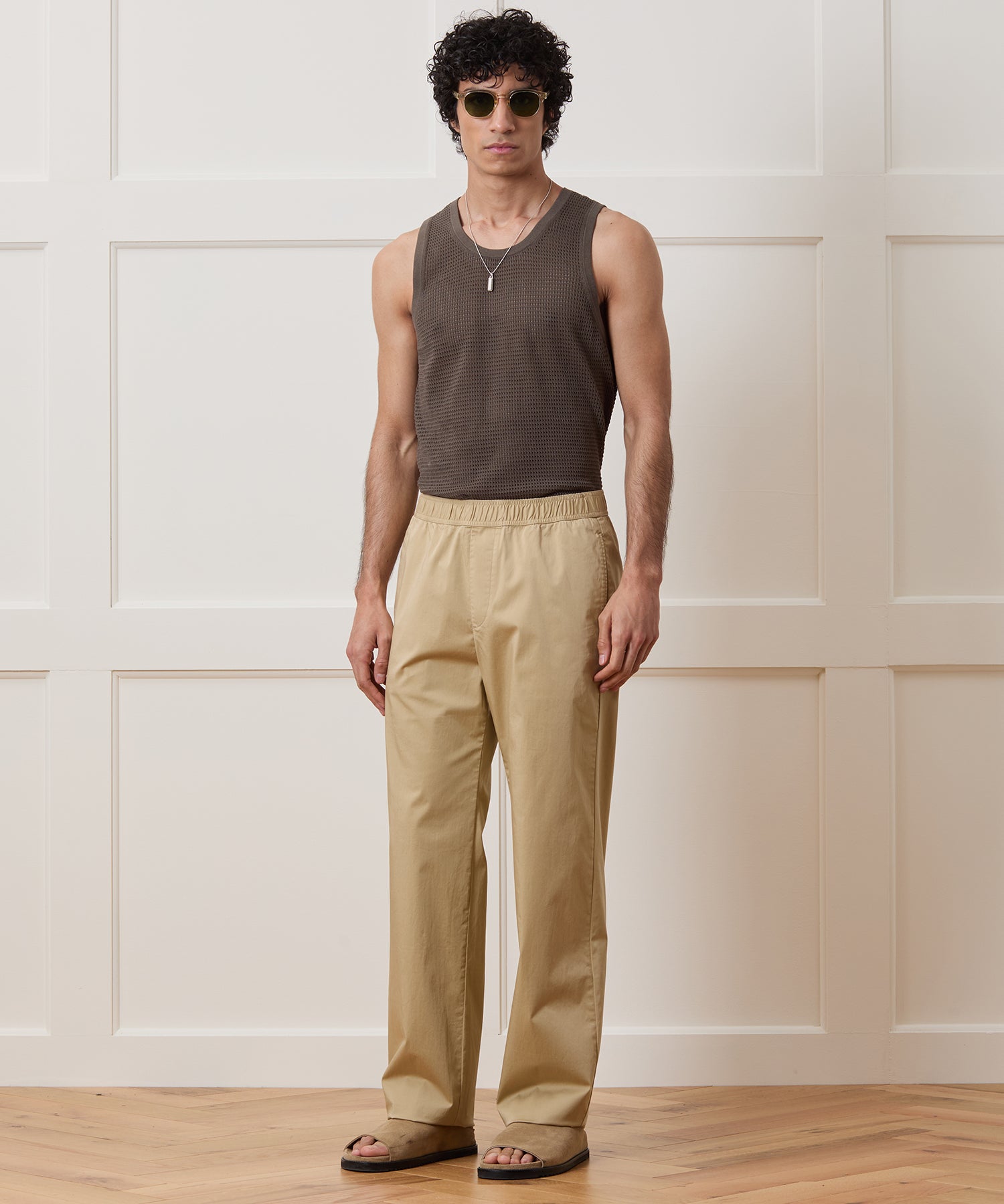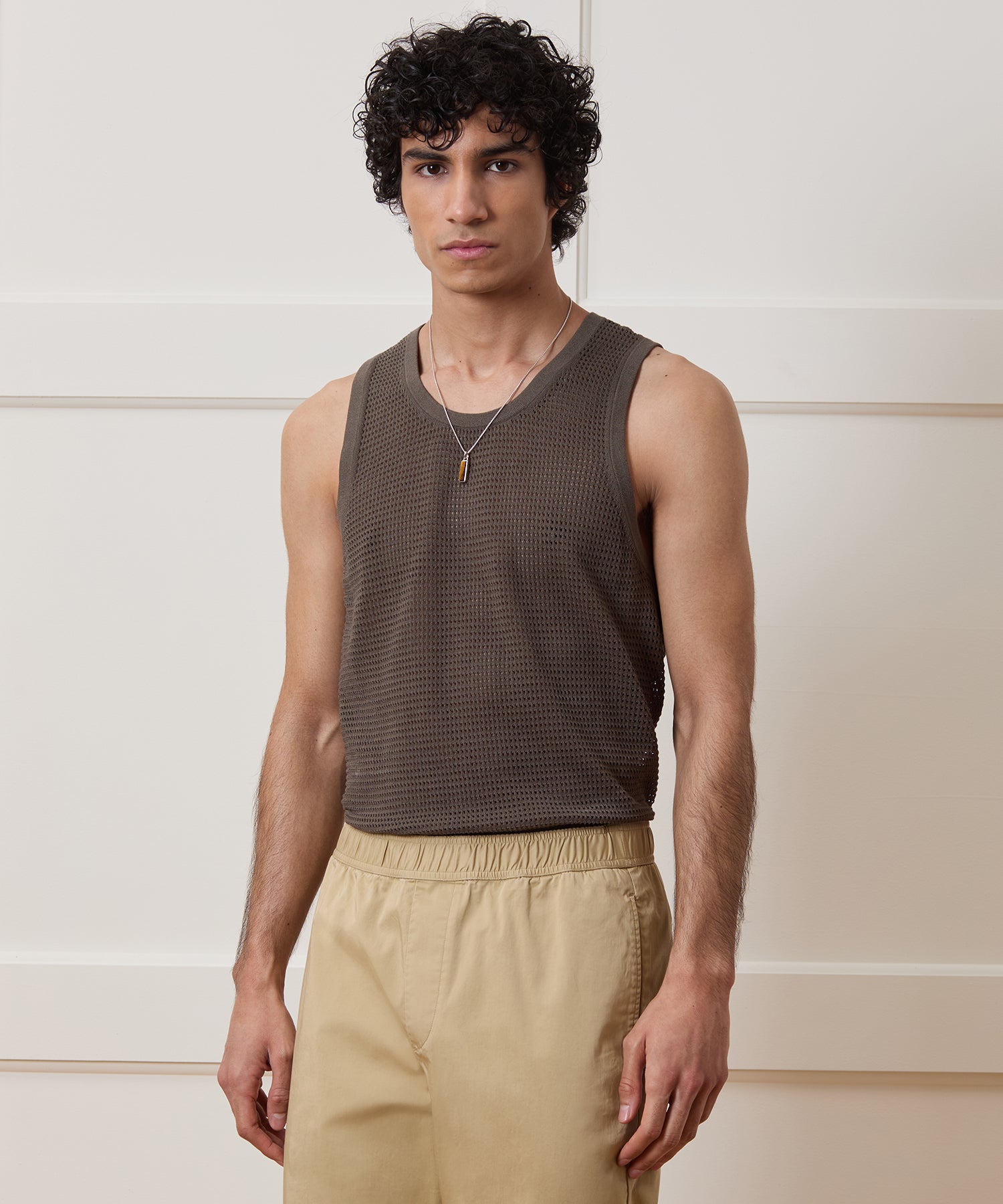 Mesh is having a moment. Todd designed this subtle nod toward the trend that’s solid enough to wear on its own and a great way to add texture to your looks as a baselayer, it’s an extremely versatile (and fashion-forward) layering piece. It’s made from a blend of cotton and nylon — the cotton is dry, breathable and has a natural feel, while the nylon keeps the fine mesh stitch tighter and lighter than pure cotton would allow for. This tank has a slim (but not tight) fit that looks especially chic tucked into high-waisted pleated pants. FYI: the tank top is named after a sleeveless bathing costume that caused quite a stir when it was worn by the British Women’s Swim Team at the 1912 Olympics; at the time, swimming pools were also called swimming tanks, and the name stuck.