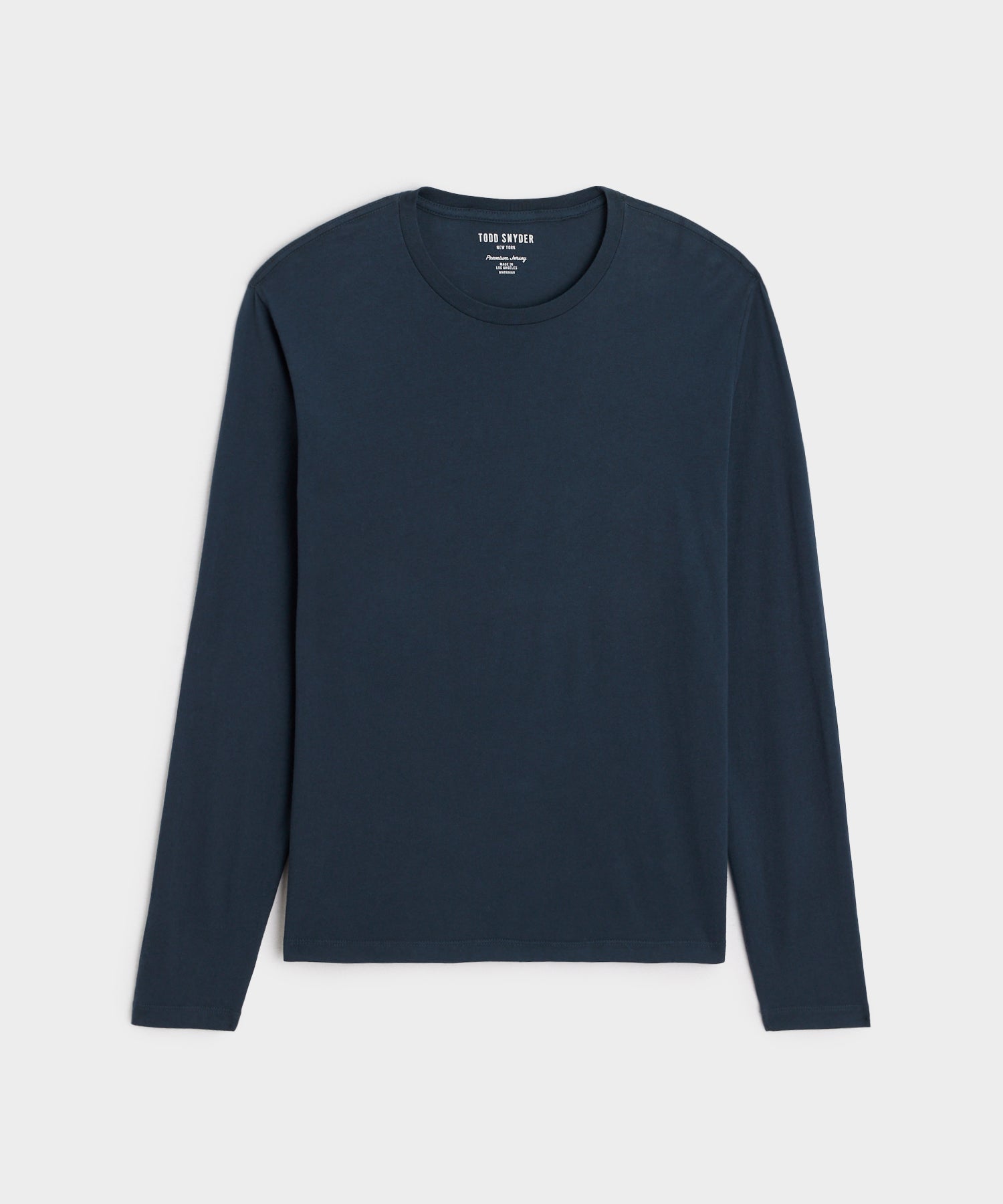 Our signature Made in the USA Long-Sleeve Tee is a year-round staple. Manufactured in a legendary Los Angeles factory, it’s crafted from an all-cotton fabric we call “Premium Jersey.” Named for largest of the Channel Islands, Jersey is both solid and opaque but also soft and breathable — its structure gives it good drape and makes for an excellent base layer. Ours is made from combed cotton, which is softer than conventional cotton (and less prone to pilling). It has a smooth, fine handfeel, the right amount of stretch and is reactive garment-dyed for rich, even color that won’t fade. Lightweight and perfect for layering, it’s ideal with jeans or under a summer suit.